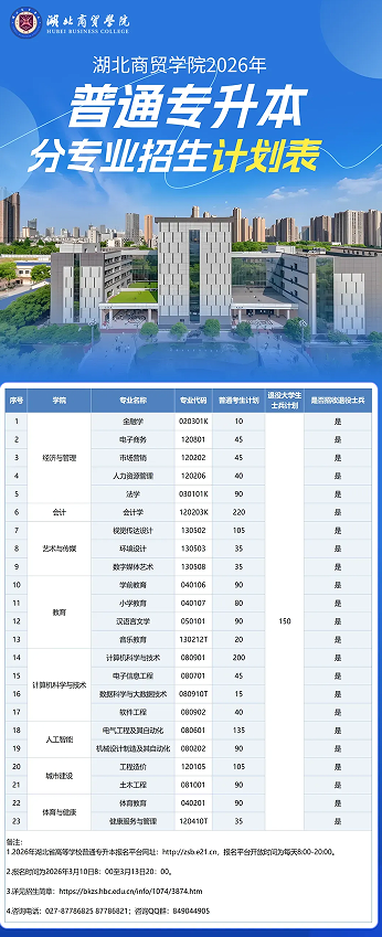 湖北商贸学院:2026年普通专升本专业招生计划