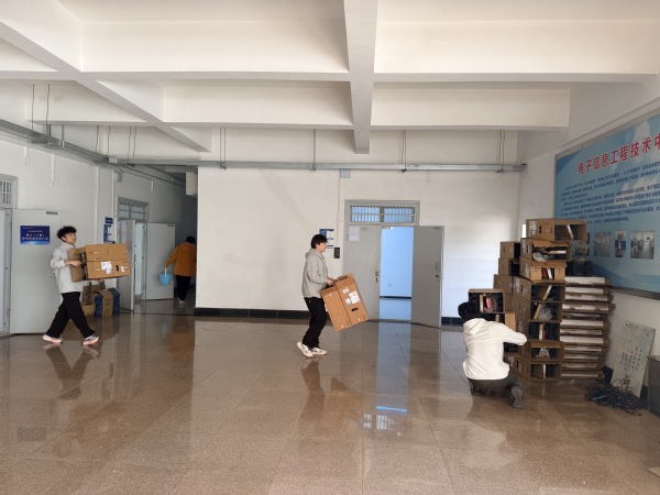 活动中,师生们迅速集结、分工协作。党员教师带头冲锋,以身作则清扫地面、擦拭门窗、整理杂物,不放过任何一个卫生死角;学生们紧跟其后,认真投入,不怕脏、不怕累,在劳动中学习如何高效协作、如何注重细节。电信25302班朱晓清同学一边整理实训器材一边说:“平时在实训课上老师经常强调要精益求精,今天对电路板进行清洁,让我更深刻地体会到,集成电路制造更需要无尘环境,整洁有序的环境也是工匠精神的一部分。我们不仅要有过硬的专业本领,更要有良好的职业习惯。”师生同心协作的忙碌身影,成为春日校园里一道亮丽的风景线,更是一堂生动的“思政实践课”。