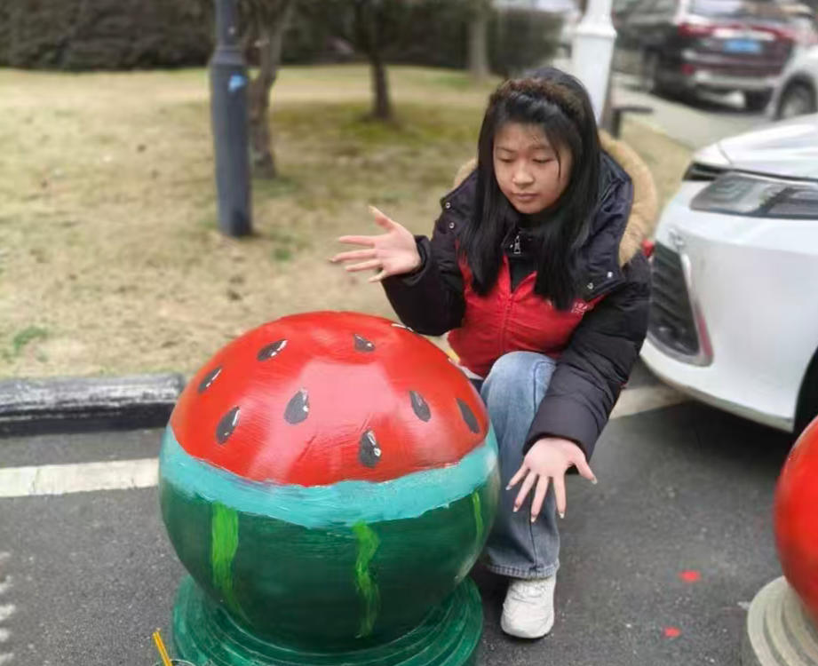 水泥墩变身艺术品 武汉商贸职业学院学子让社区更有温度