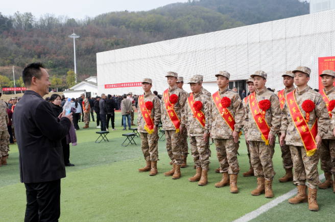 3月19日上午,蔡甸区2026年上半年欢送入伍新兵出征仪式在武汉野战国防园举行。武汉商学院党委委员、副校长罗双燕,党委学生工作部相关负责人以及部分学院辅导员一同前往现场,为即将踏上军旅征程的18名学子送行。