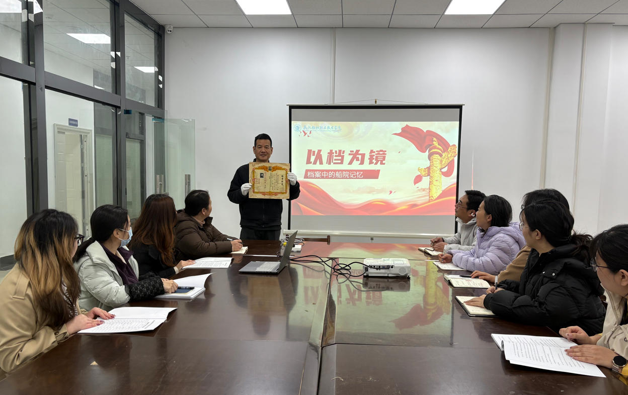 一张张泛黄的老照片、一枚枚斑驳的校徽、一本本珍贵的毕业证书……这些承载着岁月记忆的档案实物,在馆长的讲述中被赋予了生命。结合一件件珍贵档案,他生动再现了一代代船院人扎根职教、躬耕军工、攻坚克难的奋斗历程。通过这些看得见、摸得着的“历史见证”,大家深刻认识到档案工作不仅是记录历史、保存记忆的基础工作,更是深刻的文化洗礼,是传承校园精神、讲好船院故事、传播职教声音的重要基石。