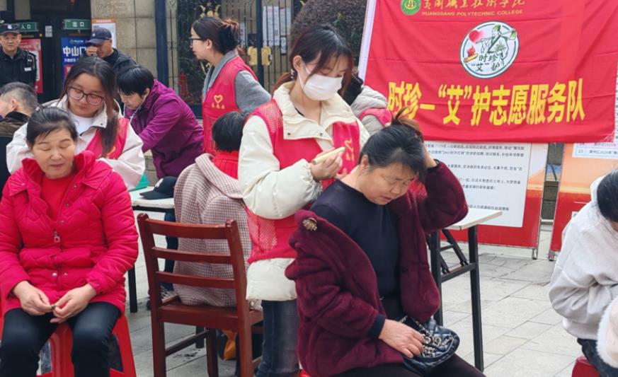 为深入践行志愿服务精神,将护理专业知识转化为服务群众的实际行动,2026年3月21日上午,黄冈职业技术学院护理学院时珍-“艾”护志愿服务队联合黄州城区西湖社区,走进翡翠一品小区开展“健康护航进社区”志愿服务活动,为小区居民提供测血压、艾灸、推拿按摩等便民服务,用专业与温暖传递护理温情。活动现场,一位特殊的“志愿者”意外现身,让这场志愿服务更添一份传承的力量——她就是该校护理学院退休优秀教师何水英。