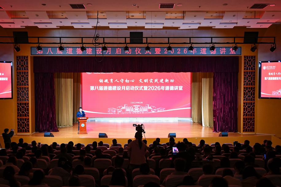 3月29日下午,汉江师范学院在南风剧场举办第八届道德建设月启动仪式暨2026年道德讲堂。共青团湖北省委副书记徐本禹受邀出席并宣讲志愿服务精神,校党委书记付永昌等全体在家校领导出席,该校第三届道德楷模童安、胡玉及全校五百余名师生代表参加。
