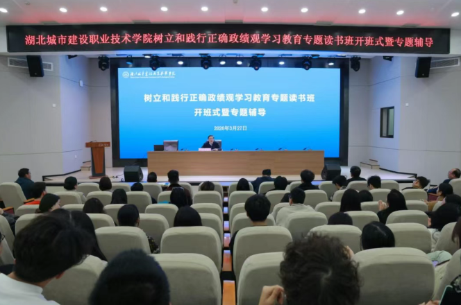 3月27日下午,湖北城市建设职业技术学院举办树立和践行正确政绩观学习教育专题读书班开班式暨专题辅导,校党委副书记胡俊主持开班式并讲话。全体校领导、中层干部、在职党员、离退休党员代表、学生党员代表及入党积极分子代表参加学习。
