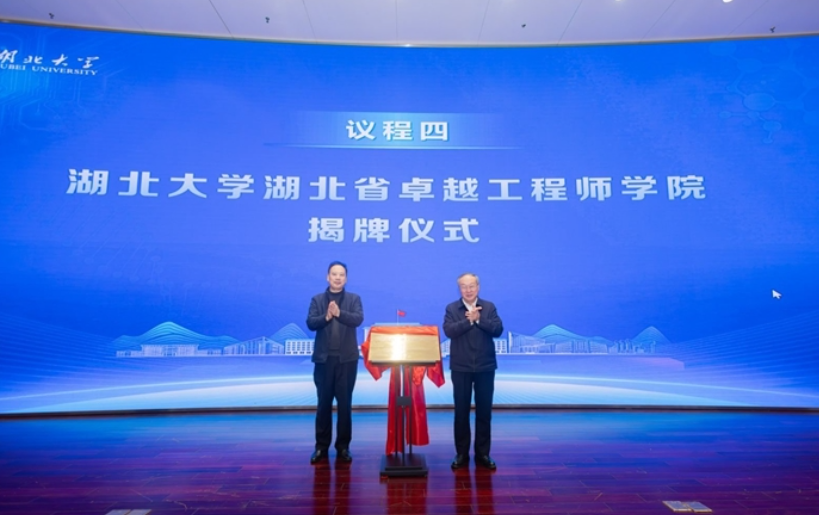 谢红星、史新华为湖北大学湖北省卓越工程师学院揭牌,正式启动学院建设。