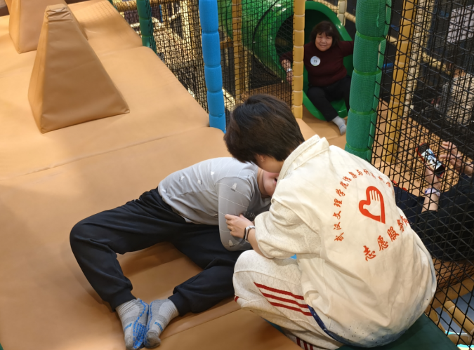 他们通过一对一或小组式的方式陪伴在孩子身边,时刻关注孩子们的安全和情绪变化。在滑梯、攀爬架、旋转设施等高危区域进行定点值守,及时提醒并劝阻危险行为,引导孩子们在安全范围内快乐游玩。同时安排流动志愿者在场地内巡查,主动协助家长照看孩子,如发现孩子脱离监护,第一时间告知家长并协助寻找,全力守护孩子们的活动安全。同时主动协助家长照看孩子,为家长们提供短暂的休息与交流机会,让家长们在轻松的氛围中分享育儿经验、获得情感支持。在志愿者的耐心引导下,原本腼腆的孩子逐渐放下防备,主动参与到集体游戏中,脸上绽放出纯真的笑容;家长们也在相互交流中感受到来自社会的理解与接纳,纷纷对志愿者的细致服务表示感谢。现场秩序井然,处处洋溢着温暖与善意,成为孤独症家庭短暂逃离压力、感受社会包容的温馨港湾。