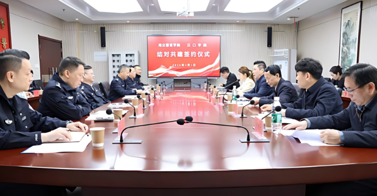 湖北警官学院党委副书记、院长徐少林致辞。他对汉口学院一行的到来表示热烈欢迎,并简要介绍了湖北警官学院的历史沿革、办学特色和党建与思政工作基本情况。他指出,此次两校开展党建与思政工作结对共建,是贯彻落实新时代党的建设总要求和立德树人根本任务的重要举措,是推动优势互补、资源共享、共同发展的有效途径。希望以此次签约为契机,建立常态化交流机制,在理论研讨、队伍建设、课程开发、实践育人等方面深化合作,共同探索党建与思政工作融合发展的新路径、新模式,为培养担当民族复兴大任的时代新人贡献力量。