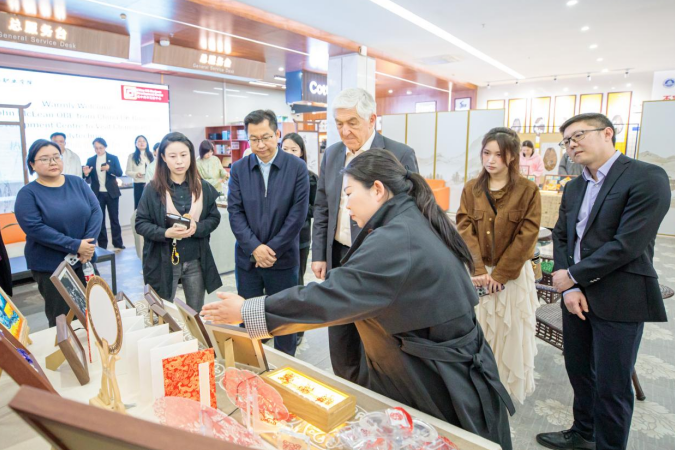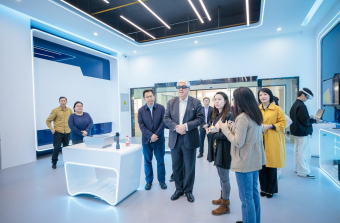 参观中,麦克莱恩主席先后深入低空经济应用创新中心、数字化全场景供应链实训中心、乡村振兴助农直播间及数字人直播间。学院相关负责人详细介绍了无人机应用技术、电商直播运营、数字人技术等特色专业建设情况,展示了学校“低空经济+数字经济”融合发展的实践成果——将前沿产业需求转化为教学资源,构建“产教融合双元育人”模式,培养兼具实操能力与创新思维的技术技能人才。麦克莱恩频频驻足观摩,对学校立足产业办教育、以教育促产业的理念表示赞赏。