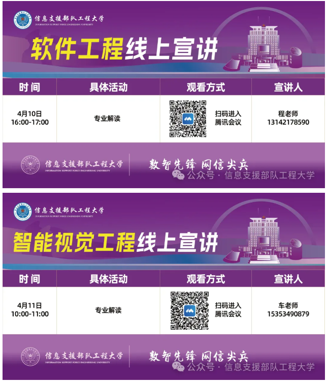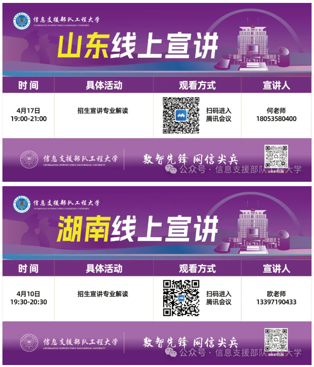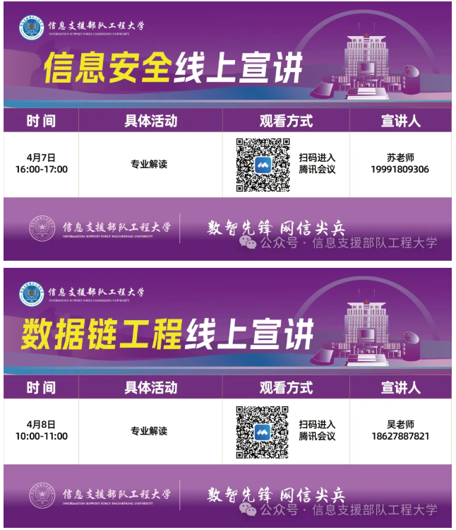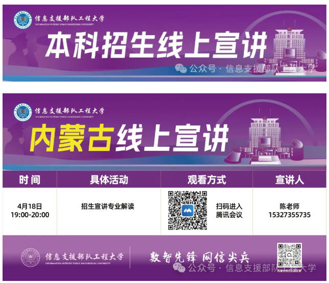 信息支援部队工程大学本科招生线上宣讲预告(4月7日至4月18日)