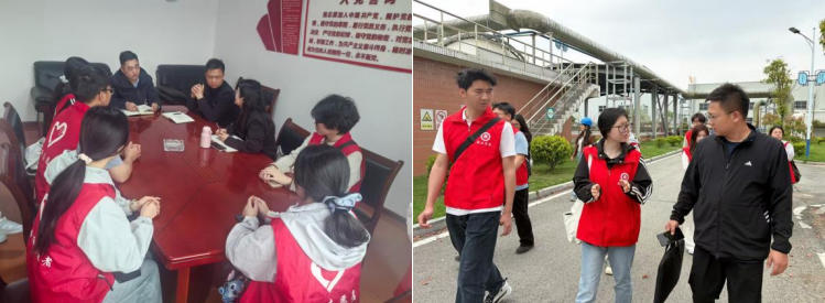 调研过程中,黄冈市生态环境局罗田县分局相关负责同志与公司负责人带领师生全程参观污水处理站,详细讲解从污水进水、生化处理、沉淀消毒到达标排放的全流程工艺,现场演示水质监测操作,并实时解读关键指标数据。通过近距离观察与互动交流,团队成员对污水处理的技术原理、运行管理和实际成效有了系统而直观的认识。