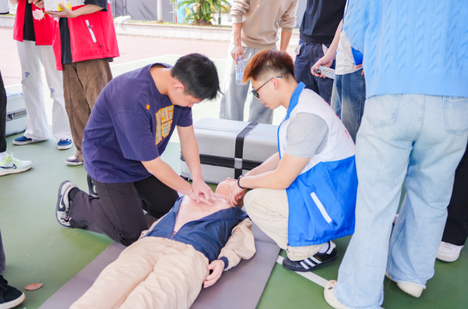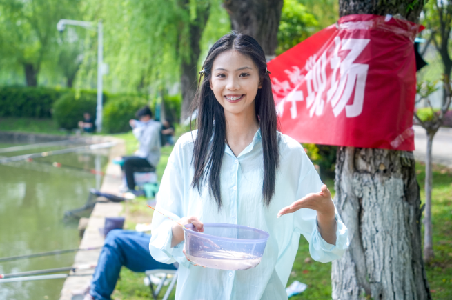 下午2点,各学院围绕“学会一门生活实操技能”,开展维修赋能、厨艺飘香、巧手匠心、数码生活、应急安全等社区课程与工作坊,为学生提供技能交换、动手实践的平台,平时想蹭的厨艺课、想亲手拿针体验的刺绣课,都能这里免费体验、亲手尝试。除了室内课程,不少室外课程也十分吸睛。经济学院推出垂钓活动,学生们自己组装钓具,沉浸式拥抱自然,也体验收获的乐趣。2025级食品科学与工程专业刘吕婷是第一位钓上鱼的“幸运儿”,把鱼捞上岸,刘吕婷仍十分兴奋:“我是个钓鱼小白,鱼上钩的瞬间觉得很惊喜又有些害怕,但是又觉得自己很勇敢,这样的活动太有意义了,真棒!”