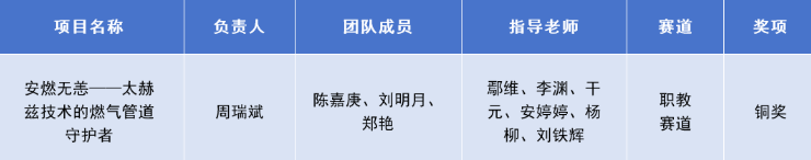 近日,教育部公布中国国际大学生创新大赛(2025)获奖名单。湖北科技职业学院参赛团队凭借项目《安燃无恙——太赫兹技术的燃气管道守护者》脱颖而出,荣获职教赛道国家级铜奖。