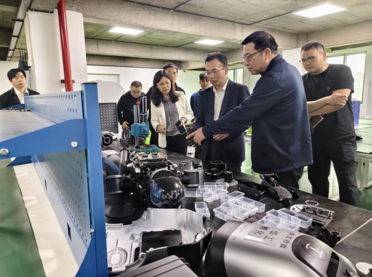在华中科技大学企业孵化器董事长郑峻、优必选科技产教融合事业部总经理肖林的陪同下,董文斌一行参观了人形机器人5S双创服务中心,详细了解了机器人的物理构造、核心部件组成及其底层运动机理。通过技术人员现场讲解,调研团队直观掌握了机器人软硬件融合的逻辑及典型应用场景的实现路径。