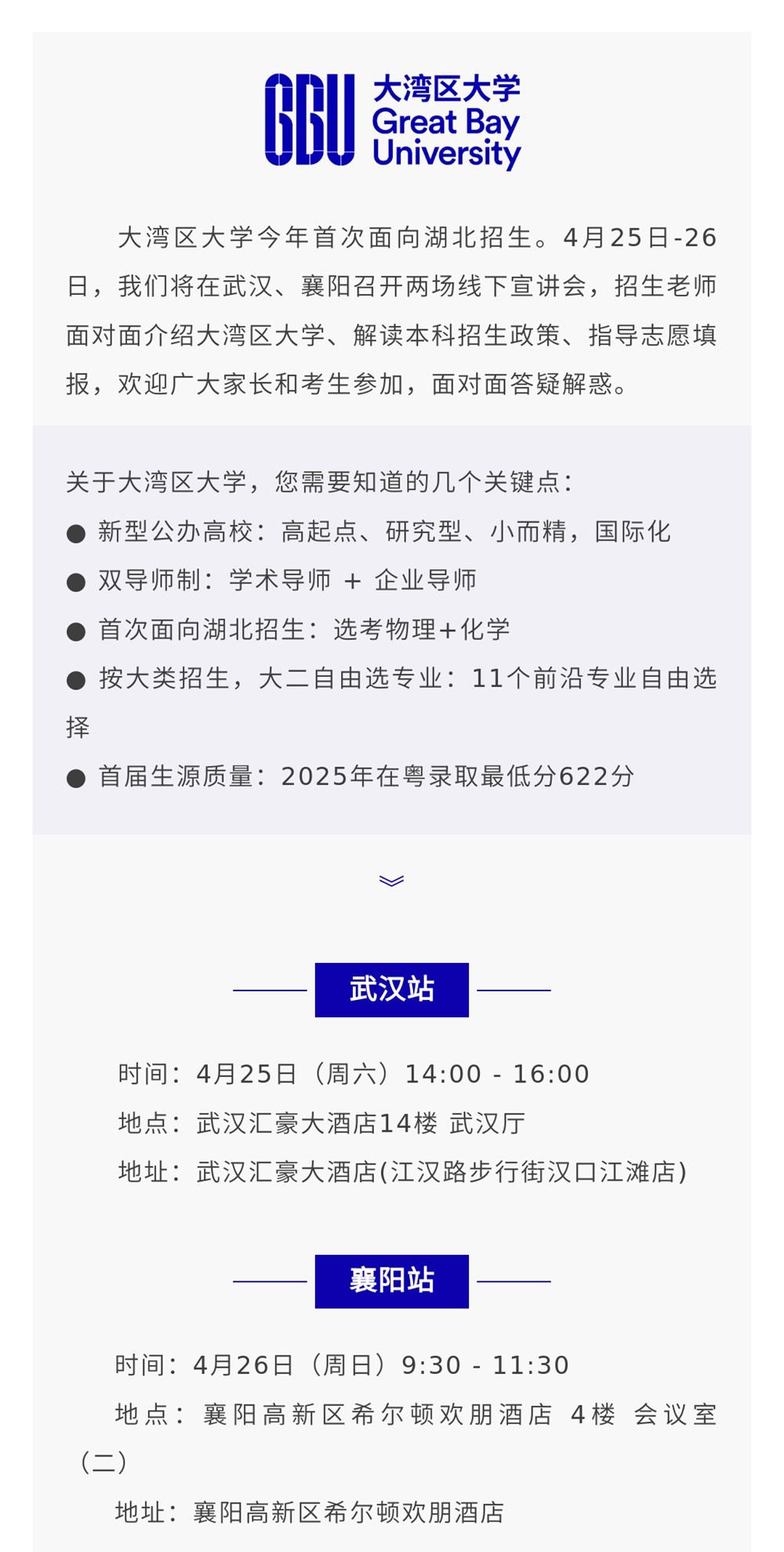 大湾区大学2026招生宣讲丨4月25日-26日武汉·襄阳联袂开启!