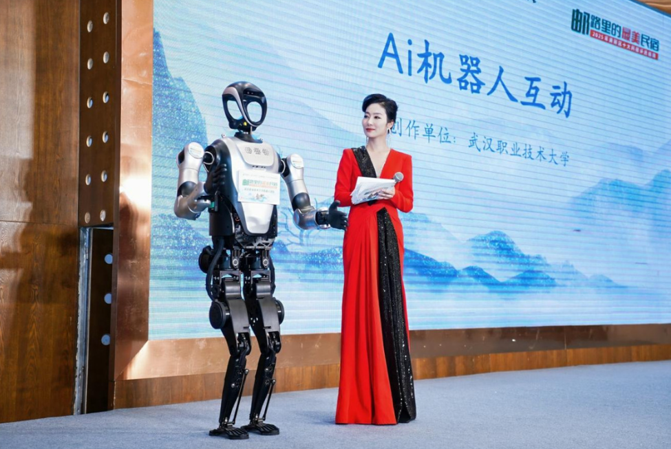 2025年4月,武汉“邮路里的最美民宿”活动现场,一台名为“小邮宝”的智能机器人格外引人注目。精准的引导服务、流畅的文旅推介和灵活的互动问答,这台机器人的交互逻辑、脚本代码、应急方案,均出自人工智能学院学生团队之手。