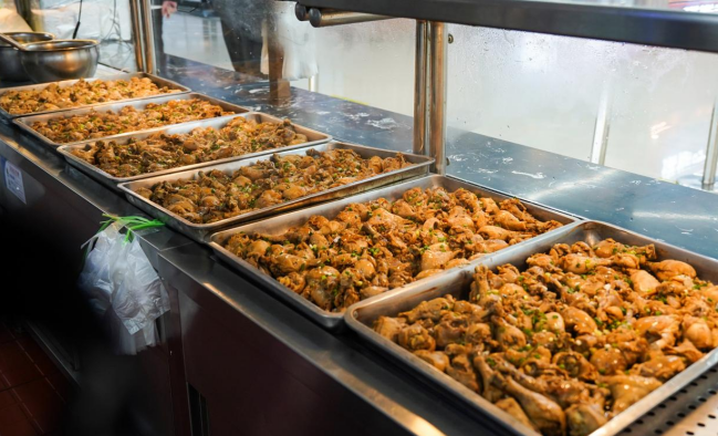 食品安全与活动秩序是本次保障工作的重点。据校产与后勤管理处副处长龚爱鹏介绍,现场安排专人协调秩序,确保发放过程顺畅有序。为了让同学们在午餐时段吃到热乎、新鲜的卤鸡腿,食堂工作人员凌晨三点便到岗,紧张有序地开展卤制工作。“学校为在校学生免费加鸡腿,我们辛苦一点也值得。”一位后厨师傅说道。