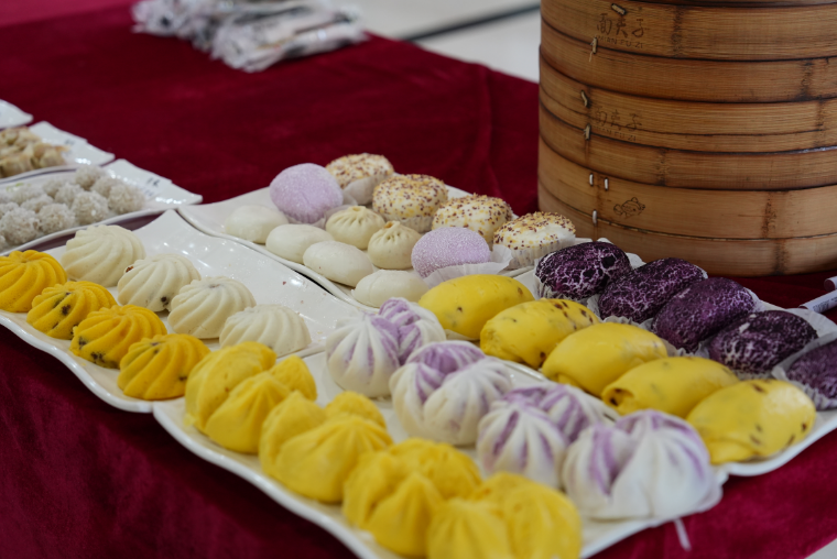 “哪款面点最受欢迎?”面对提问,面点区的师傅指向紫薯馒头介绍道:“这是用有机紫薯制作的,营养高、热量低,最受女生欢迎。”一旁试吃的学生补充说:“烧麦也不错,排了五分钟队,值了。”