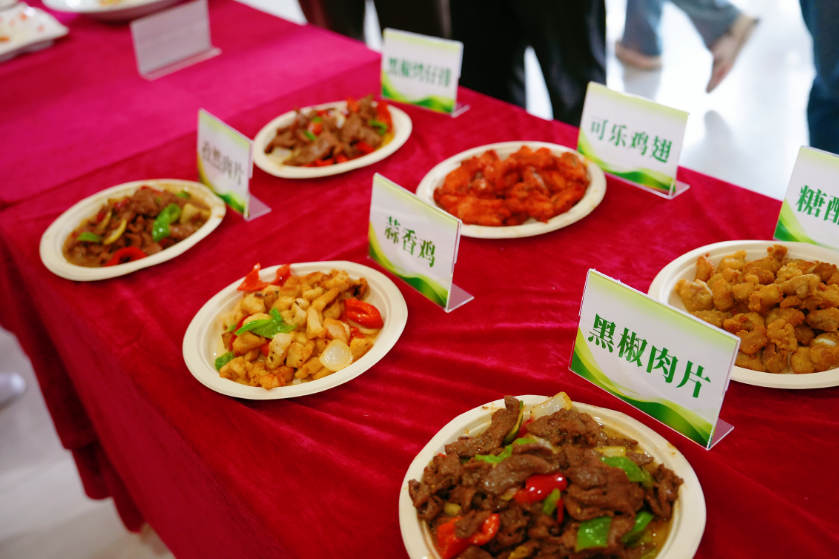 活动现场,热炒、涮品、面点、炸物四大类菜品分区域陈列。食堂师傅现场烹制,师生凭活动券免费试吃。