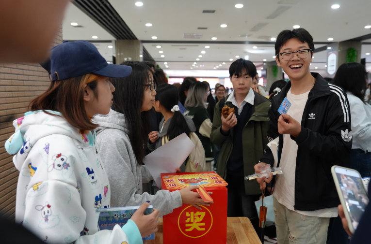 “热干面代金券一份!”“30元代金券!”“50元代金券!”中奖声此起彼伏。据学校后勤保卫处相关负责人介绍,本次抽奖实现了全覆盖,奖项共设五档:特等奖“晴川锦鲤”1名,奖金为200元校园卡;一等奖若干名,50元代金券;二等奖若干名,30元代金券;三等奖若干名,10元代金券;参与奖若干名,为热干面券或豆浆券。