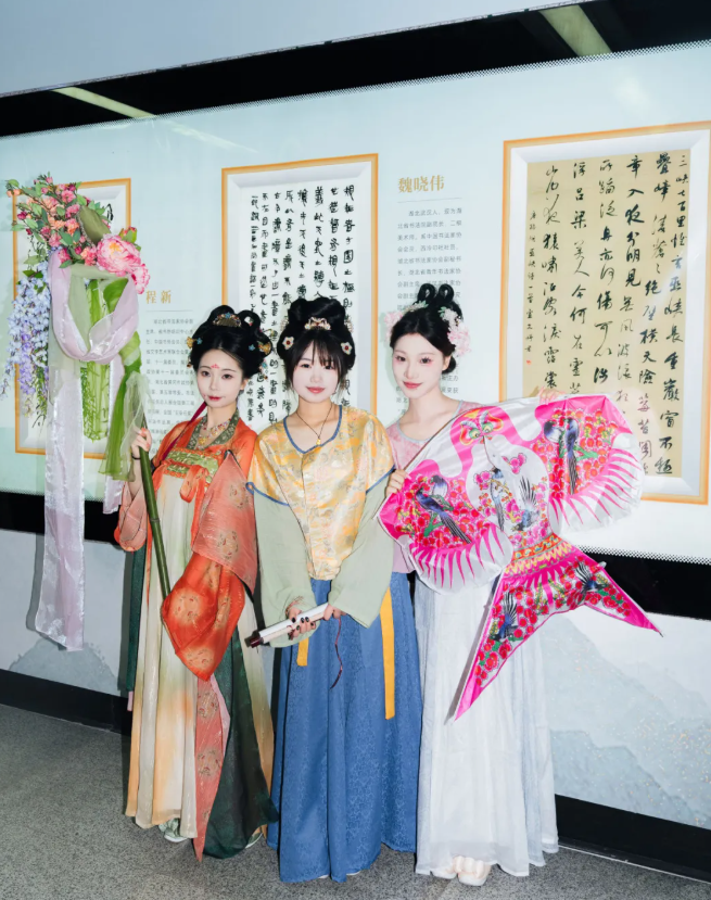 4月21日,武汉地铁8号线水果湖站变身为一座流动的文化客厅。由湖北省书法家协会指导,弘堂书社、武汉地铁集团、中南地铁传媒联合打造的“弘堂书社武汉地铁书法艺术空间”正式揭幕。湖北城市建设职业技术学院大学生艺术团受邀参加启动仪式,以一场创意汉服秀《市井欢歌》惊艳全场,成为现场最亮眼的风景。
