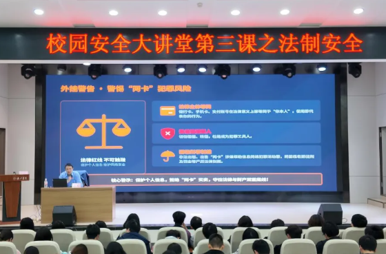 恰逢4月15日全民国家安全教育日,学校学工处、保卫工作部联合鄂州市公安局临空分局,举办法制安全主题宣讲活动。鄂州市公安局临空分局法制大队负责人何剑警官,以“案例剖析+法条解读+风险提示”的形式授课,围绕与大学生息息相关的法律法规,剖析多起涉校涉生典型案例,清晰点明大学生日常学习生活中的法律风险与行为边界,让师生明白“学法、懂法、守法”是守护自身权益的重要保障。