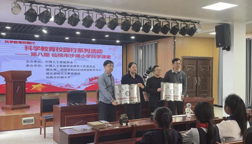 为进一步弘扬科学精神,激发青少年对科技创新的热情,近日,由中国人工智能学会(CAAI)主办,CAAI青年工作委员会、湖北第二师范学院STEM科技教育中心联合承办,武汉理工大学计算机与人工智能学院、湖北基础天文教育基地协办的“科学教育校园行系列活动”走进湖北省仙桃市沙湖小学,给孩子们带去精彩的机器人科普、天文科普实践活动。