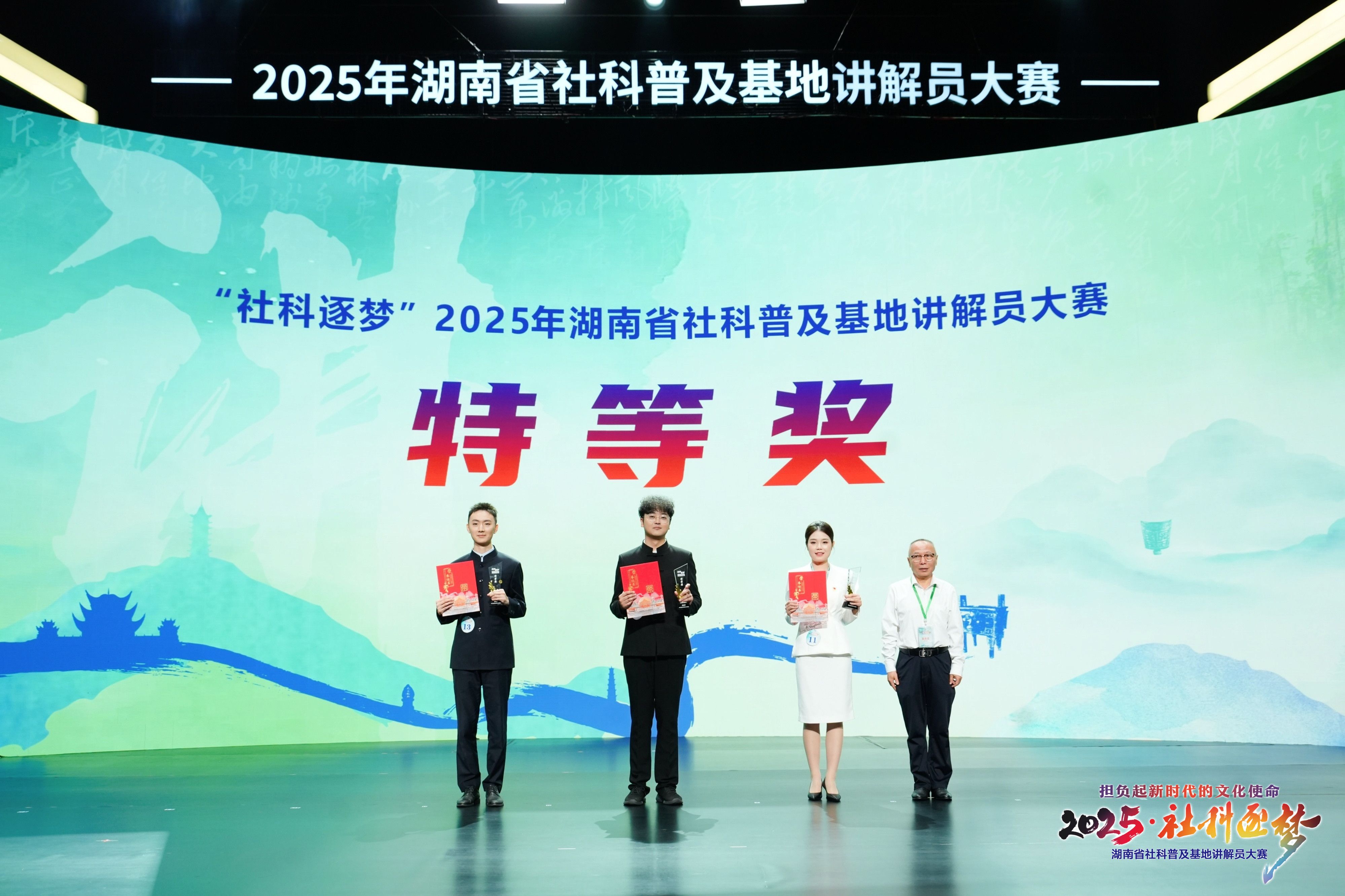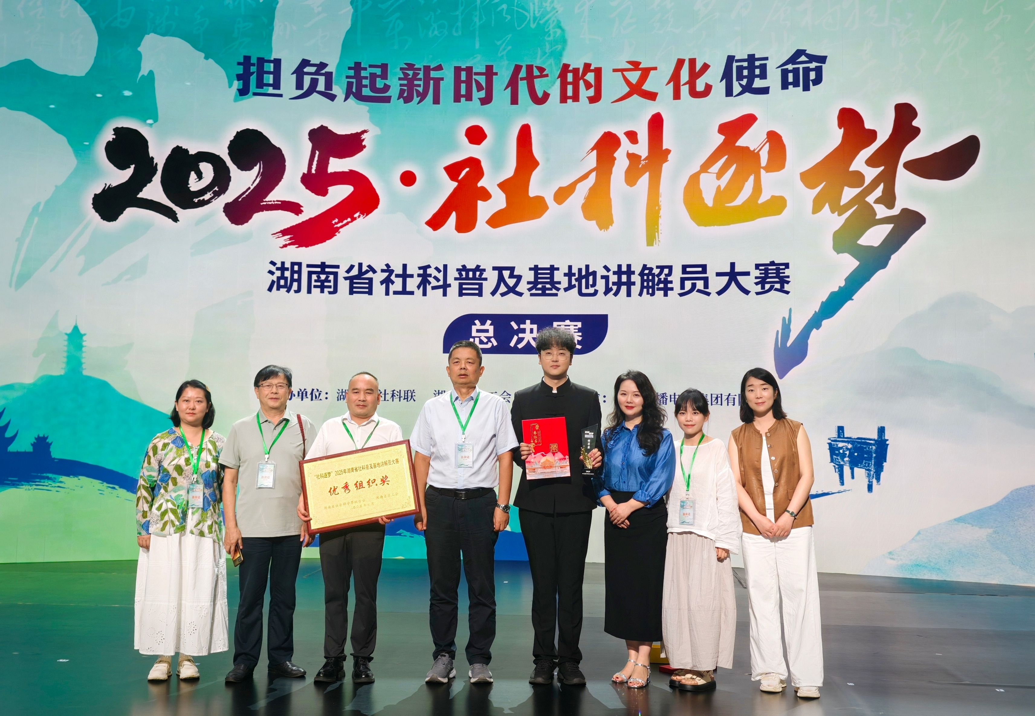 7月28日,“社科逐梦”2025年湖南省社科普及基地讲解员大赛总决赛在长沙马栏山视频文创园利亚德虚拟演播厅落幕,张家界学院教师白崴以总分第一名的成绩斩获大赛特等奖。实现了该校在省级社科领域奖项的新突破。