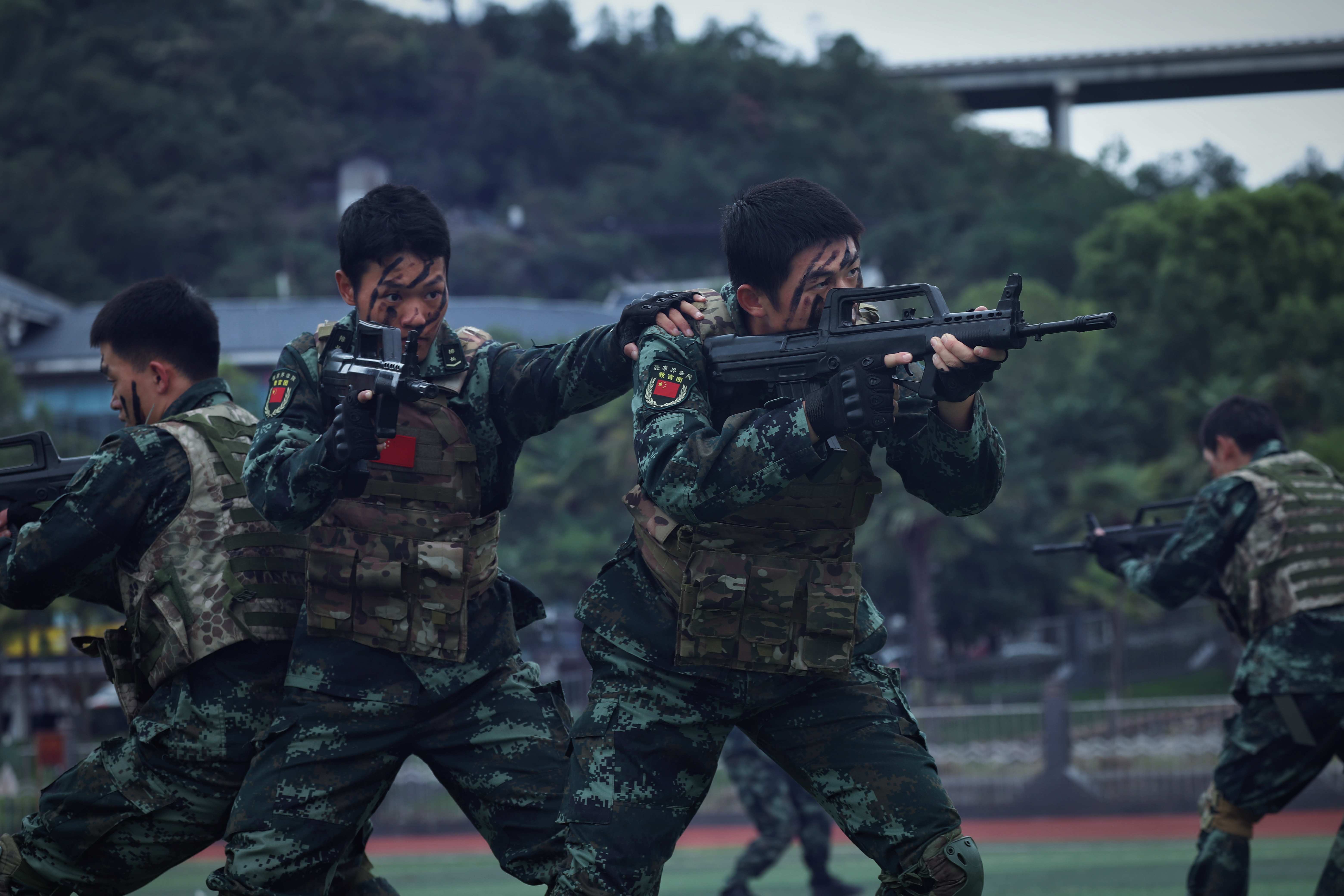 表演环节,在激昂的进行曲中,七个学院的方阵依次走过主席台,步伐铿锵,地动山摇。与鼓声相伴随的是几缕彩色硝烟,战士们目视前方,快速匍匐前行,英姿飒爽。一声怒吼,气势如虹。军体拳方阵瞬间展开,马步稳扎,拳脚生风。弓步冲拳势如破竹,穿喉弹踢凌厉果断。动作整齐划一,眼神坚毅果敢。每一次挥臂踏步,都将青春热血融入铿锵节奏,展现出淬炼后的昂扬斗志与磅礴力量,赢得满场掌声雷动。尤为引人注目的是班组战术与散打对抗表演。他们动作迅猛,配合默契,一招一式虎虎生风,展现了基础的战术素养和格斗技能。现场呐喊声此起彼伏,气氛热烈。