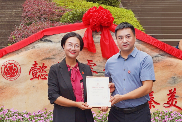 9月29日下午,我校举行了热烈的捐赠仪式,接收由九三学社湖南女子学院支社捐建的校训石——这是学校纪念建校40周年收到的第一份礼物。校党委书记段美娟,党委委员、副校长莫文斌,党委委员、宣传统战部部长周红才及校党政办公室、招生就业处(校友会)等有关部门负责人、各民主党派基层组织、党外知识分子联谊会负责人和成员代表、学校学生代表参加仪式。