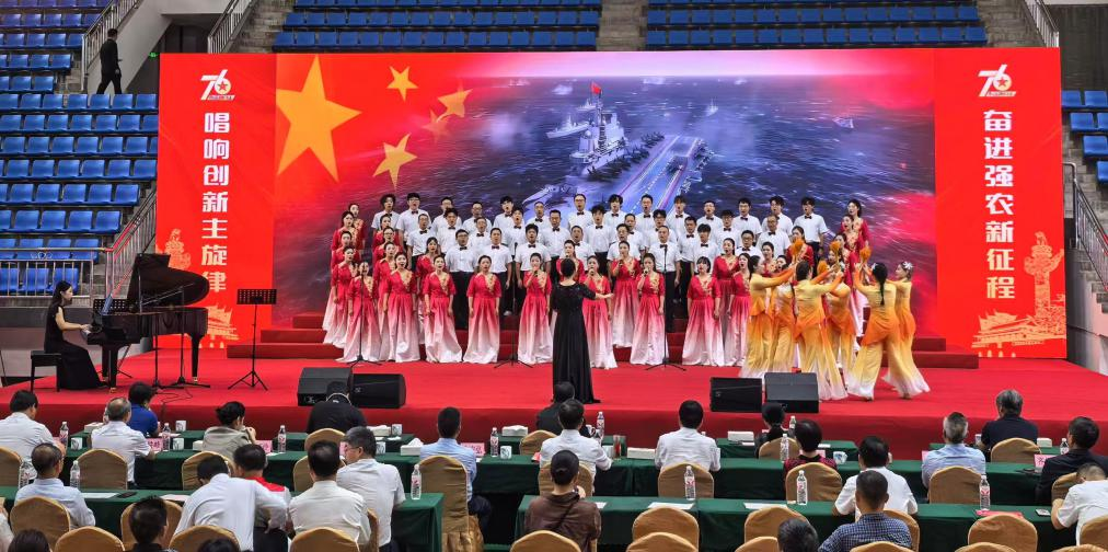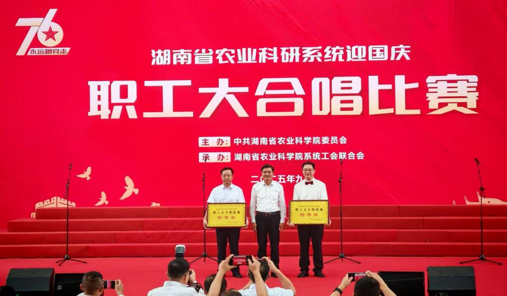 比赛当天,刘铁峰带领70名参赛队员精神抖擞、着装统一,以饱满的热情登上舞台。他们用深情的歌声抒发对祖国农业事业的无限热爱,将农科人在田间辛勤耕耘、在实验室刻苦攻关的奋斗故事,通过动人的演唱与精彩的舞台表现生动呈现。最终,他们凭借出色的艺术表达和深厚的情感共鸣,从众多强劲队伍中脱颖而出,一举摘得“特等奖”桂冠。