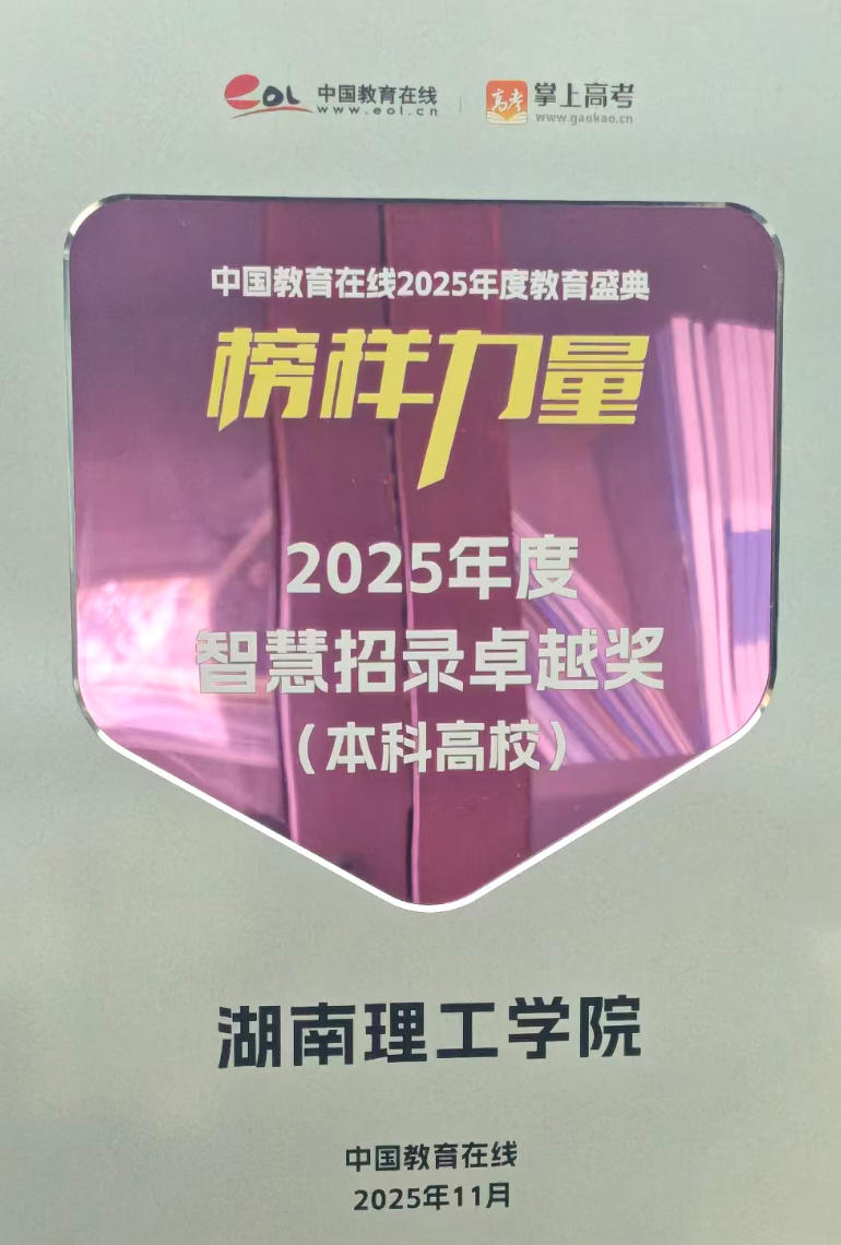近日,中国教育在线“榜样力量·2025年度教育盛典”优秀案例公布。湖南理工学院凭借在招录工作中对智慧招录相关技术工具的高水平运用及卓越成果,荣获“2025年度智慧招录卓越奖(本科高校)”。