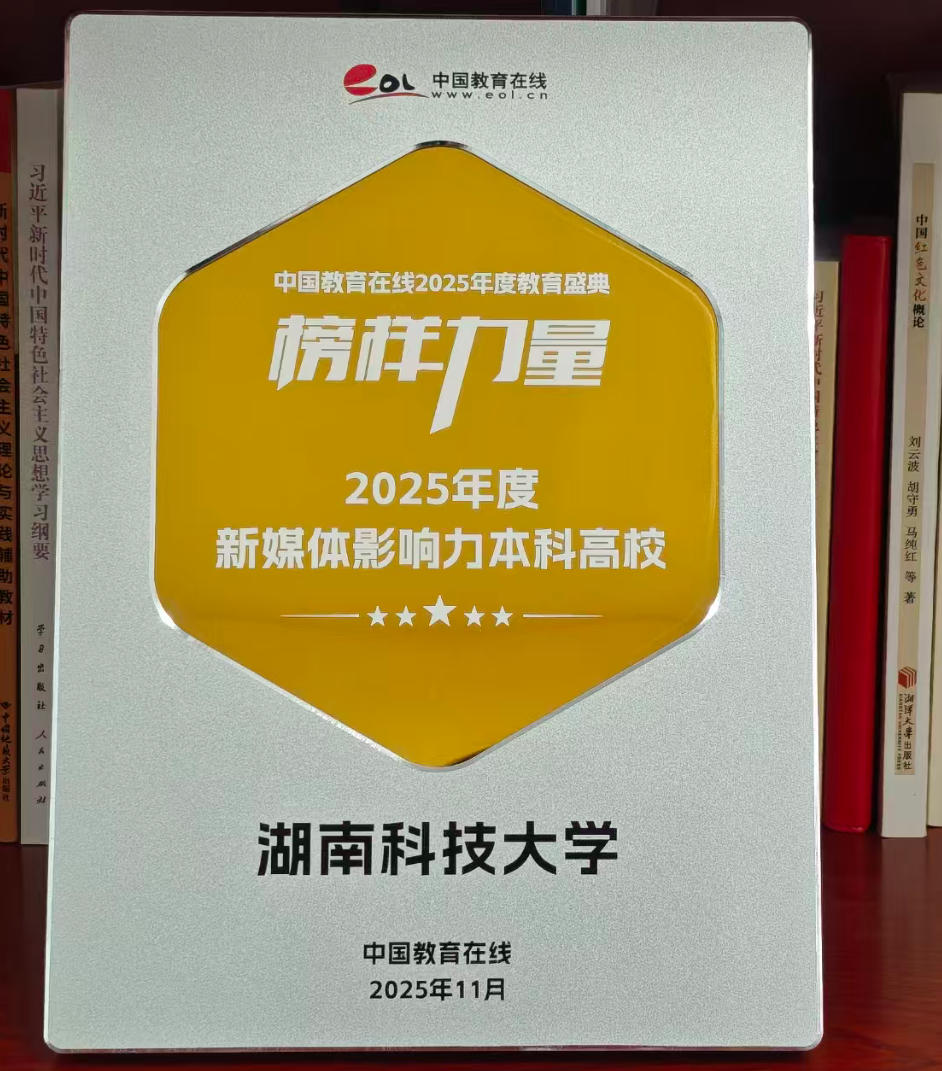 近日,中国教育在线“榜样力量·2025年度教育盛典”优秀案例名单公布。湖南科技大学荣获 “2025年度新媒体影响力本科高校”。