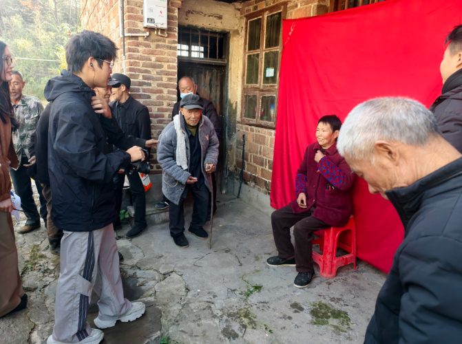 “大爷,您坐好,头稍微抬一点,笑一笑……”在村部广场,为留守老人拍摄“最美证件照”的活动同样温情满满。考虑到村里许多留守老人年事已高,出门拍摄证件照不便,且家中缺乏近期的规范照片,工作队与学院特意带来了专业摄影设备和服装。志愿者们细心地为老人整理衣物、梳理头发,耐心调整拍摄角度,力求捕捉到每位老人最精神的瞬间。看着相机里自己容光焕发的样子,老人们的脸上露出了欣慰的笑容。一张小小的证件照,不仅定格了老人们的幸福时刻,更让他们感受到了来自社会的关爱与尊重,切实解决了生活中的实际难题。