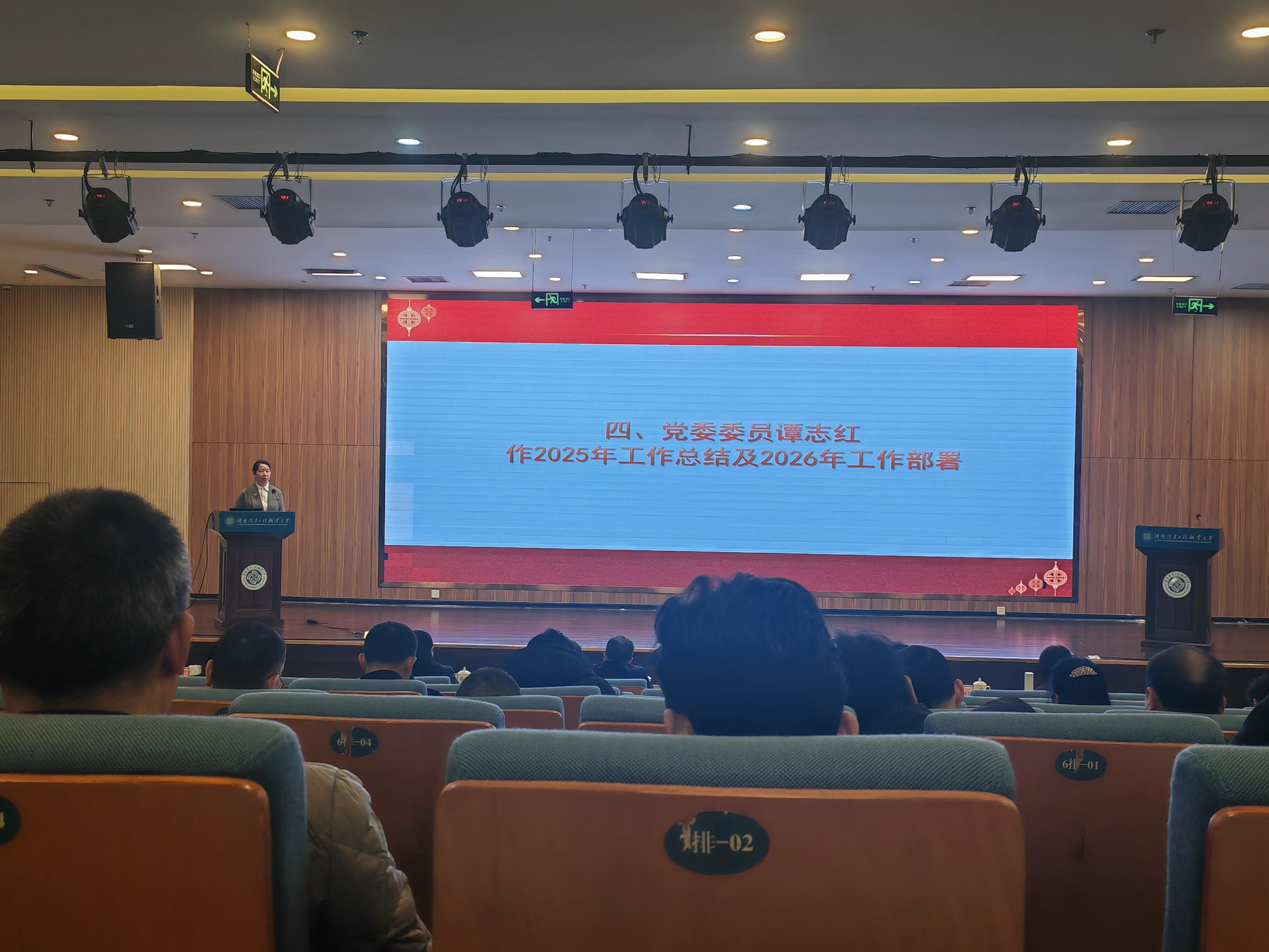 谭志红代表该校作2025年招生就业校友工作总结与2026年工作部署报告。报告指出,2025年,湖南汽车工程职业大学坚持“招生品牌化、培养高阶化、就业优质化、校友生态化”目标,构建“招生—培养—就业—校友”协同育人生态,取得了显著成效:招生规模与质量实现双突破,生源结构持续优化;毕业生去向落实率保持高位,留湘留株就业比例稳步提升,有力服务湖南“三高四新”战略与地方产业发展;校友工作体系初步构建,智慧平台上线运行,“校友回湘”工作实现良好开局。报告深入分析了2026年面临的政策机遇、优化动能与竞争挑战,明确提出以“提质、融合、创新”为年度工作基调,以深化全链条“四化”协作为路径的总体思路。围绕招生“三扩”稳质、就业“三提”突围、校友“三融”赋能,报告详细部署了2026年在优化生源结构、强化品牌宣传、提升精准服务、健全全员就业格局、激活校友反哺生态等方面的具体举措,为全年工作绘就了清晰的路线图。