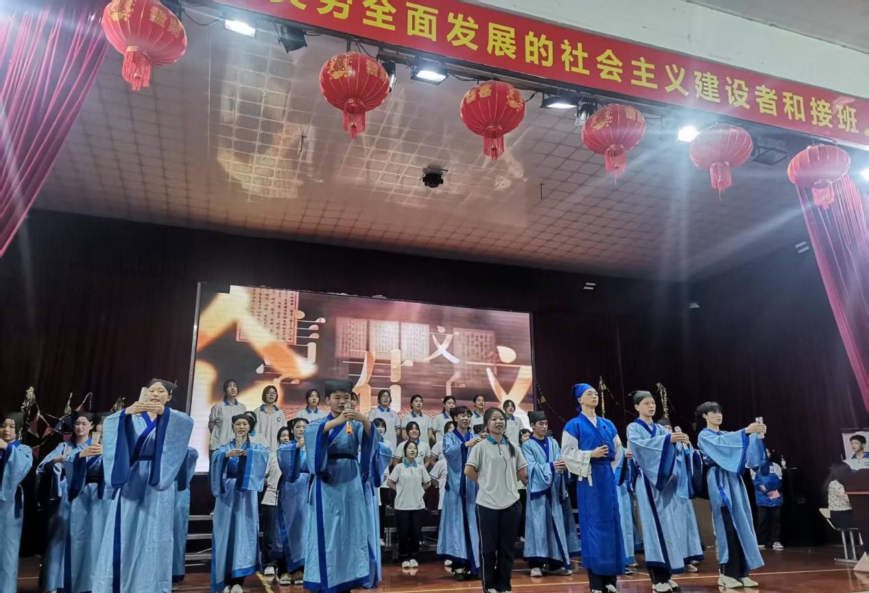 比赛现场,各班学子以饱满的热情演绎国学经典。《论语》的智慧箴言、《道德经》的深邃哲理、《弟子规》的敦厚教诲,通过朗诵、吟唱、情景剧等多元形式精彩呈现。