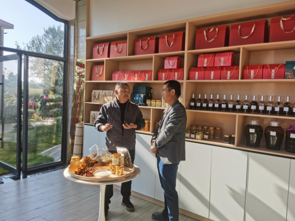 直播结束后,湘乡市春晓中蜂养殖合作社的朱总向与会人员详细介绍了合作社的发展历程及各款产品的特色,尤其对湘潭非遗产品——黑芝麻丸的制作工艺与文化内涵进行了深入讲解,让大家对本土非遗文化有了更深刻的认识。