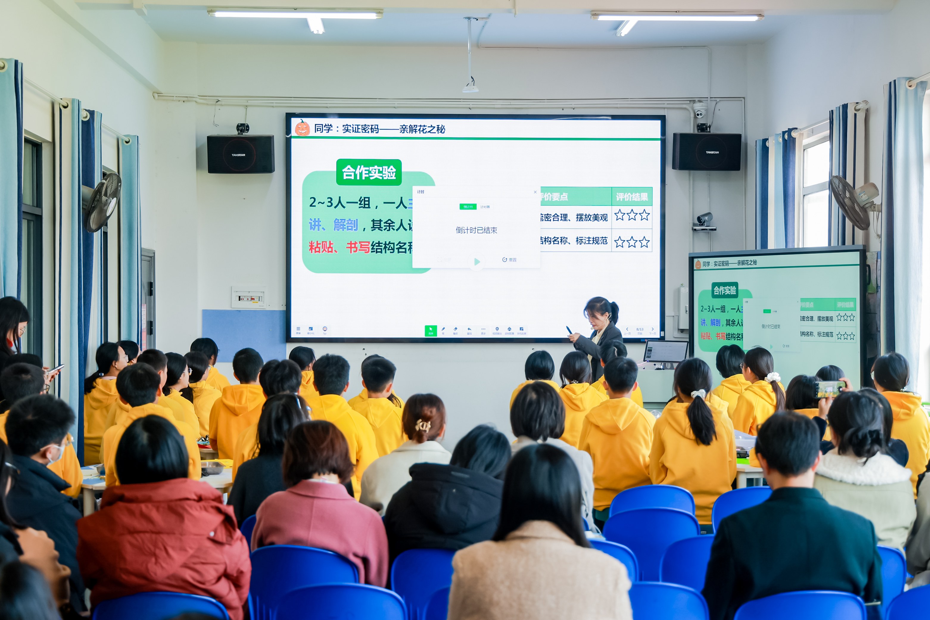 同升湖小学、初中的多位老师开展现场课堂示范,涉及科学、生物、数学、音乐等学科,分为“3D沉浸课堂”与“千手AI智趣课堂”两大类型——六年级科学《谁先迎来黎明?》、八年级生物《破解开花植物繁衍密码》以3D沉浸式呈现核心知识,九年级《AI+数学 玩转二次函数》、六年级《我的班歌 我的旋律》则依托千手AI智趣课程利用AI工具实现个性化教学,既体现技术对学科教学的适配性,也呼应了教育部关于“未来课堂”“以学为中心”的理念导向。