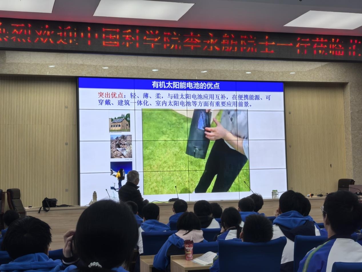 如果说人生信条是李院士的精神底色,那么有机光伏研究便是他毕生“追光 ”的科学征程。在科普环节,这位发表论文 900 余篇、SCI他人引用超 8.8 万次的顶尖科学家,以深入浅出的讲解,为同学们揭开了太阳能电池的奥秘。