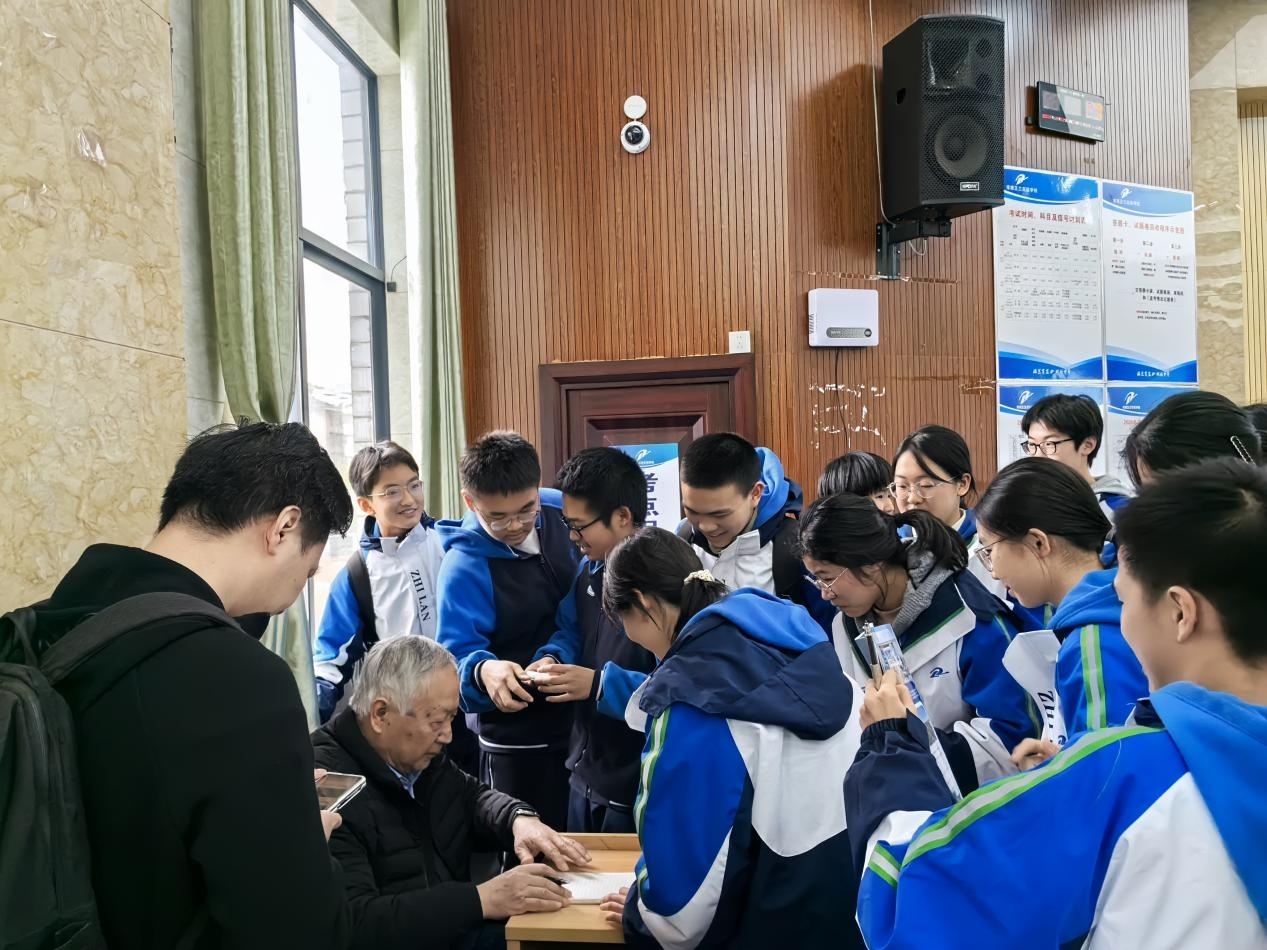 讲座结束后,同学们仍意犹未尽,纷纷围在院士身边,有的拿出笔记本请院士签名寄语,有的希望与院士合影留念。院士始终面带笑容,一一满足同学们的请求,亲手写下鼓励的话语,与大家亲切握手、并肩合影,眼神里满是对青少年学子的期许与关怀。近距离的交流让同学们真切感受到了老一辈科学家平易近人、严谨求实的人格魅力。