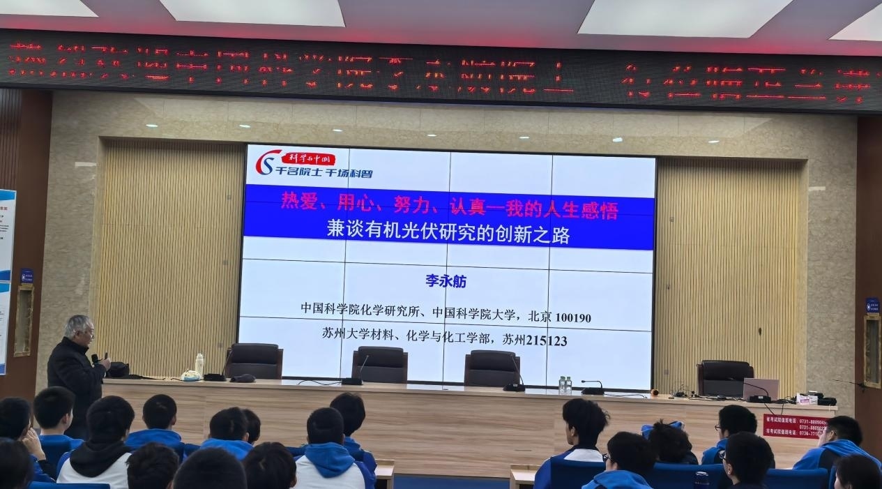 拓宽学子视野的生动实践。活动不仅让同学们近距离接触了顶尖科学家,了解了有机光伏领域的前沿知识,更通过院士的人生经历与科研感悟,传递了“逆境中坚守、努力中成长 ”的人生态度,以及严谨求实、勇于创新的科学精神。