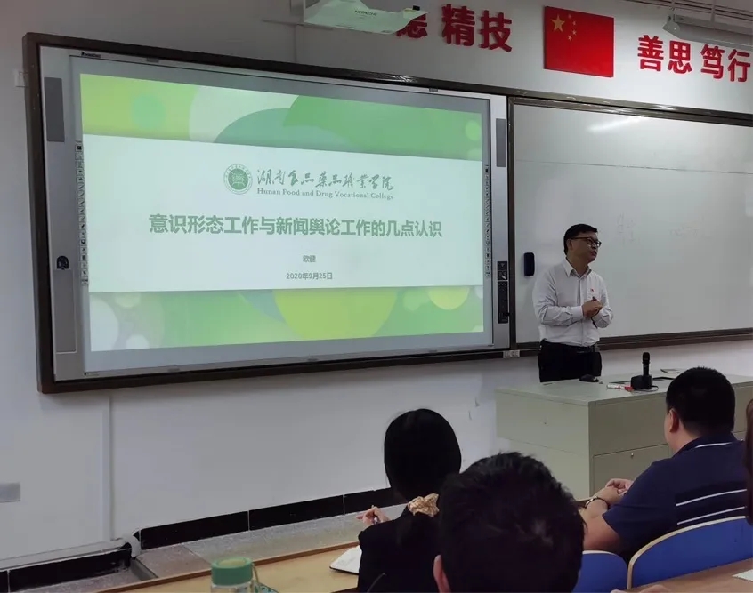 为加强学校学生新闻宣传工作队伍建设,提升新闻宣传工作能力,9月25日下午,湖南食品药品职业学院大学生记者团本学期第一次培训于阶梯教室204举行。会议由记者团团长肖梦婷主持。宣传统战部部长欧健,宣传统战部任盈盈、阳晖,易班周昭鑫以及全体记者团成员、易班成员和新媒体成员参与了本次会议。
