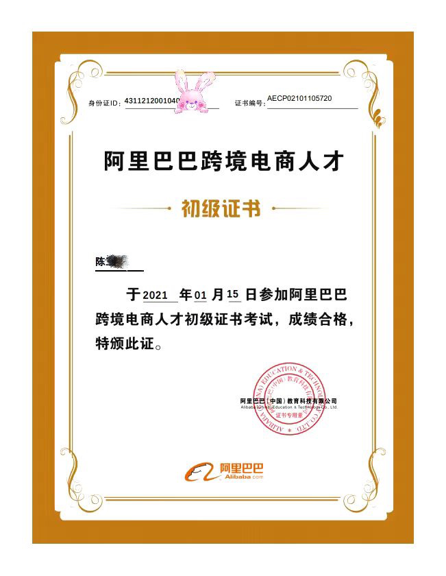 全日制大专文凭、英语三级证、跨境电子商务师等级证书(初级、三级)、跨境电商B2B数据运营职业技能等级证书(初、中级)、网店运营推广职业技能等级证书(中级)。