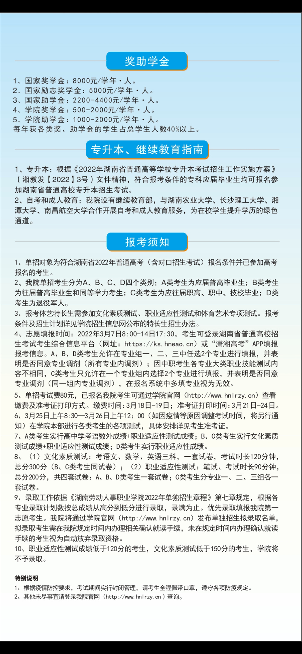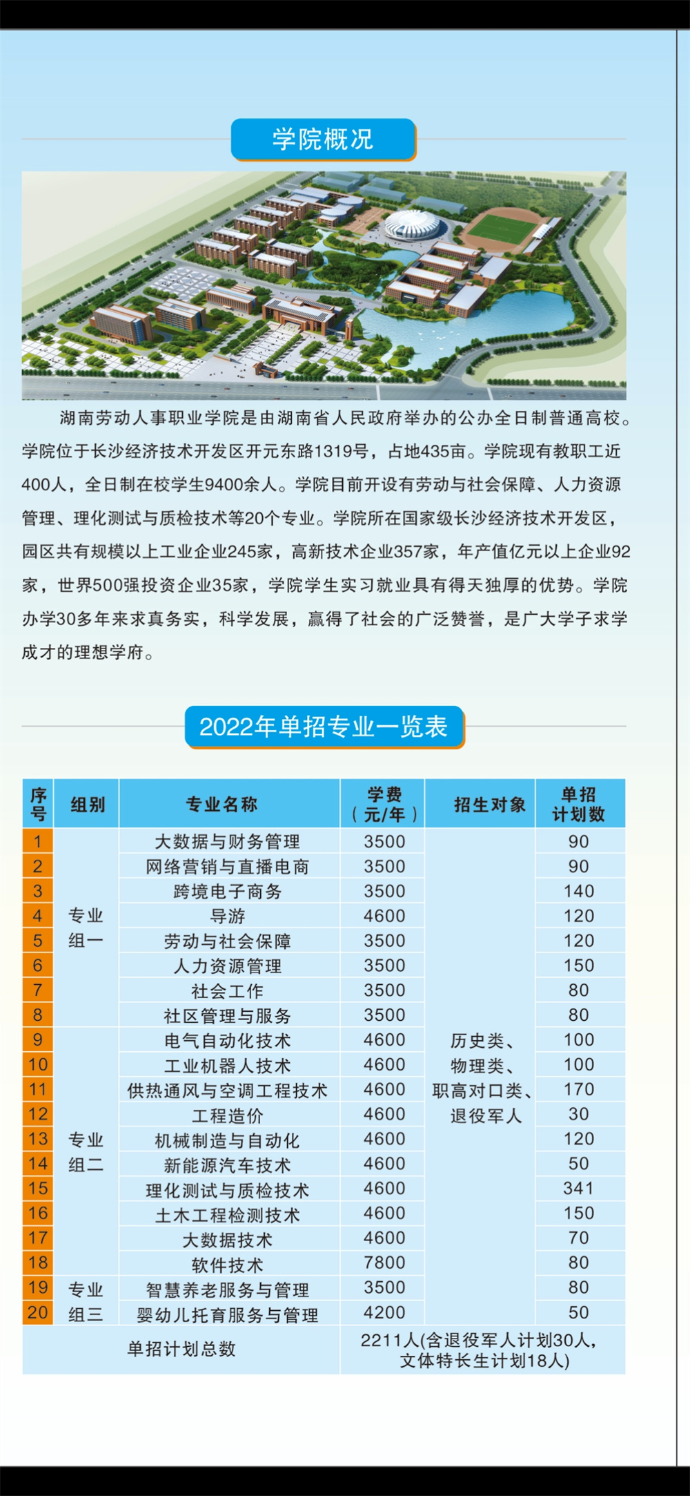 湖南劳动人事职业学院2022年单独招生简章