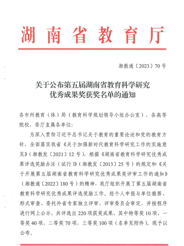 近日,省教育厅公布了第五届湖南省教育科学研究优秀成果奖名单,湖南水利水电职业技术学院副校长李付亮主持的“高职高质量课堂建设探索”成果荣获二等奖。