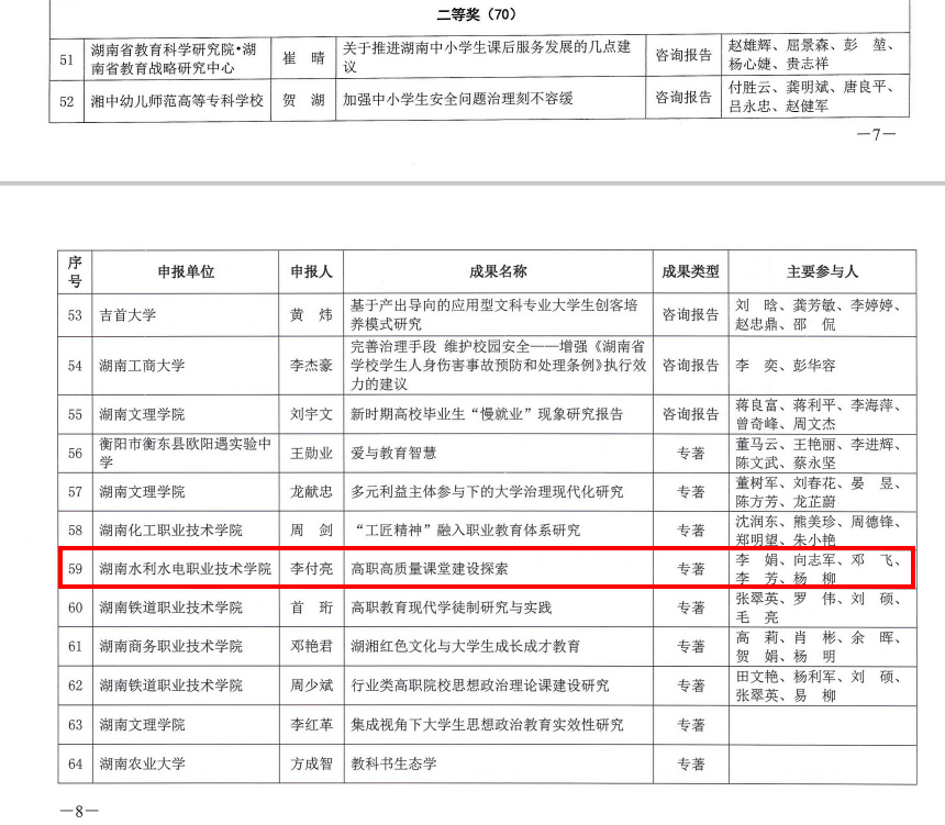 聚焦高质量课堂建设,湖南水利水电职业技术学院获第五届湖南省教育科学研究优秀成果奖二等奖