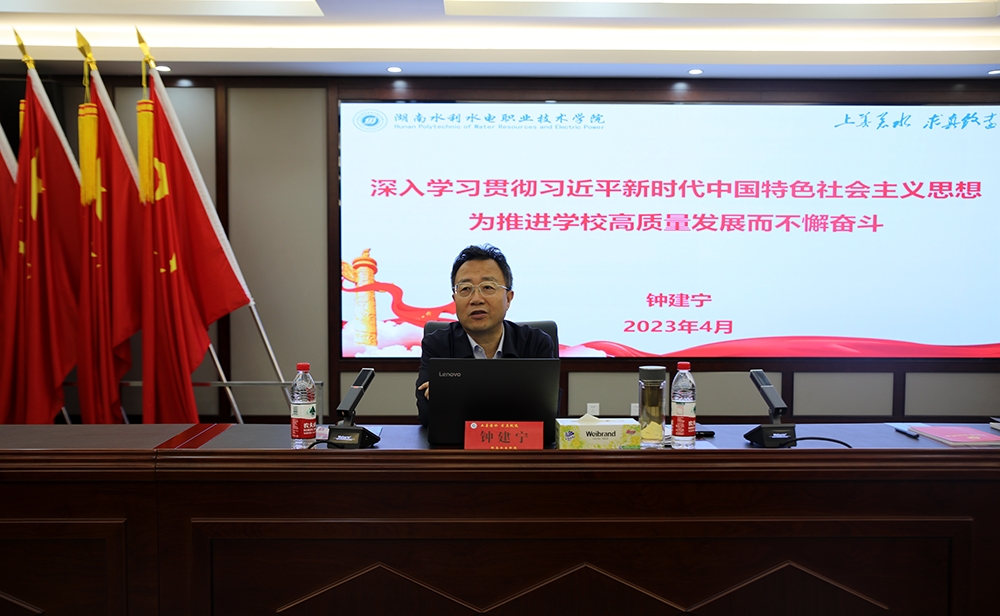 4月23日上午,湖南水利水电职业技术学院学习贯彻习近平新时代中国特色社会主义思想主题教育读书班在图书馆实训综合楼601会议室开班。党委理论学习中心组成员、各部门党政负责人参加读书班学习。党委书记钟建宁作动员讲话并讲授“开班第一课”,党委副书记、校长周柏林主持开班仪式。