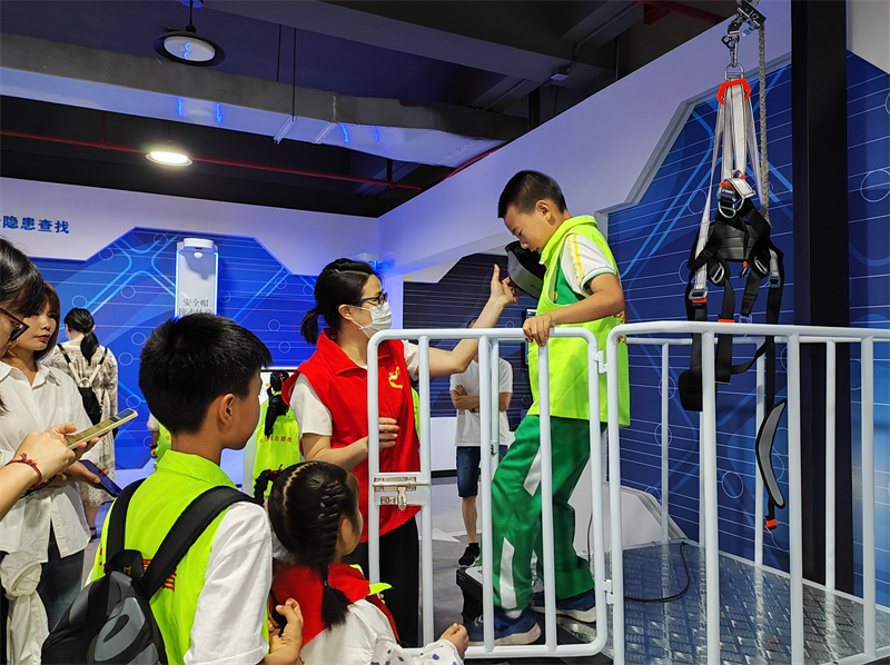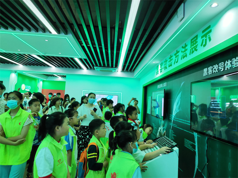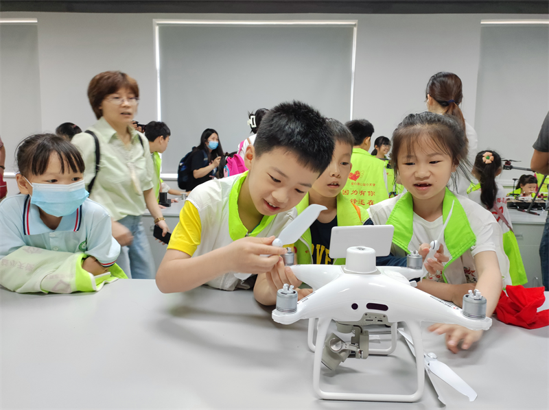 在学校模拟电站,“小天使”们观看了《致敬中国水电建设者》视频,了解了电是怎么来的以及国家的超级山河、超级大坝、超级电站,自豪于中国水电处在世界前列。在水利施工安全体验馆,认识了安全防护用品、安全标识、安全着装、水上救援设备,了解了虚实一体化塔基等安全生产设备,体验了安全带使用、现场急救、虚拟灭火、VR安全事故处理。在360安全体验馆,通过网络安全的普法教育,网络透明人、黑客改号、钓鱼邮件、手机充电桩等四大情景模拟体验以及360安全大脑展示,让孩子们直观体验、模拟互动,以寓教于乐的形式将网络威胁可视化展现。在无人机实训室,孩子们近距离接触了无人机,观看了无人机飞行表演,乐享了飞行”盛宴”。