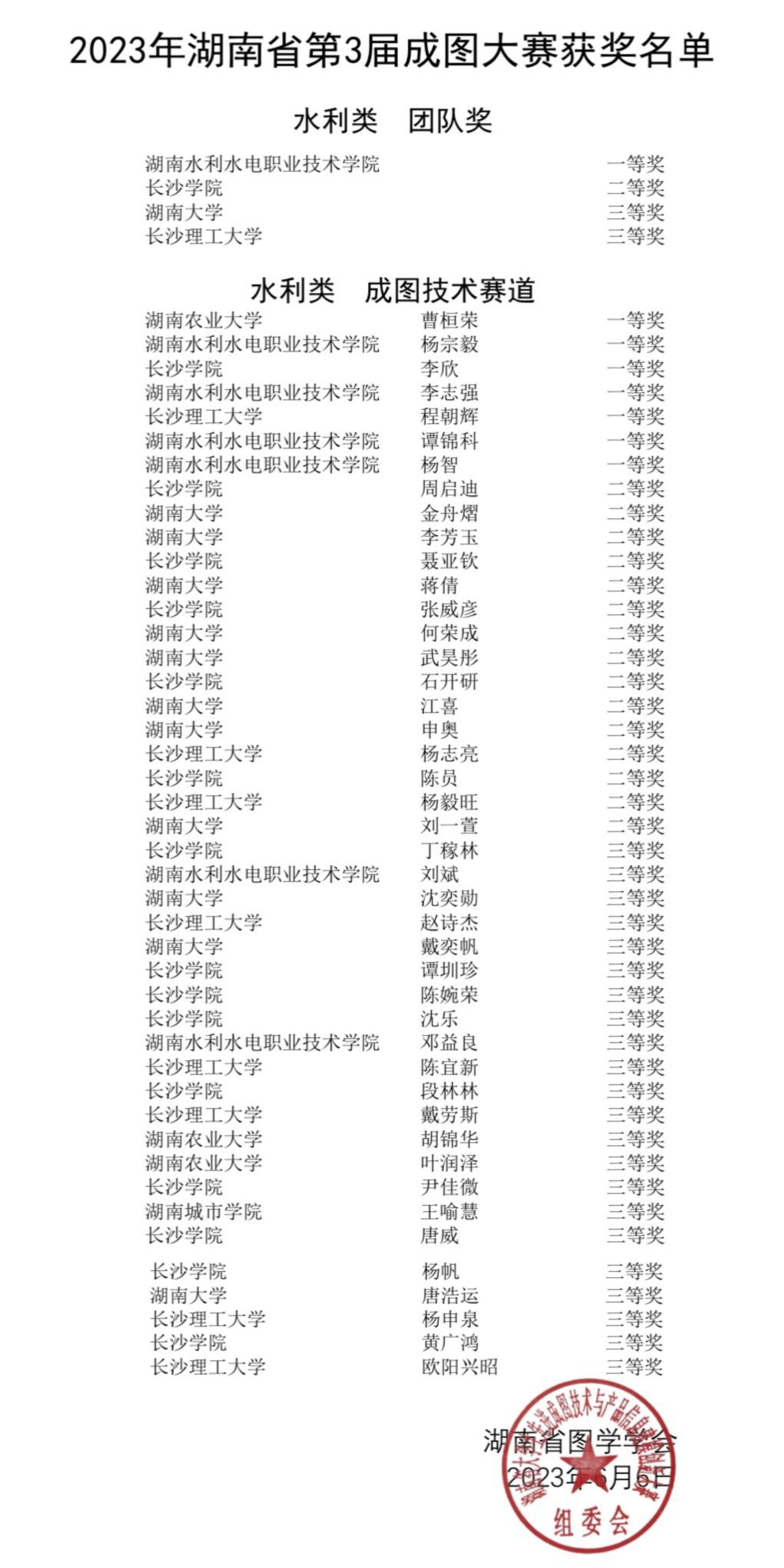 该赛项是被中国高等教育学会列入“全国普通高校学科竞赛排行榜”的一项赛事。此次比赛由湖南省图学学会、湖南省大学生先进成图技术与产品信息建模大赛组委会主办,南华大学承办。来自全省6所高校的72名选手参加了竞赛,湖南水电职院参赛学生与多所双一流高校同台竞技,运用水利工程信息化绘图技术(CAD、Revit、sketchup等软件)探讨和钻研水闸、泵站、溢洪道等水工建筑物的综合表达,一举夺冠,充分展现了学生扎实的专业素养和卓越的实践能力。