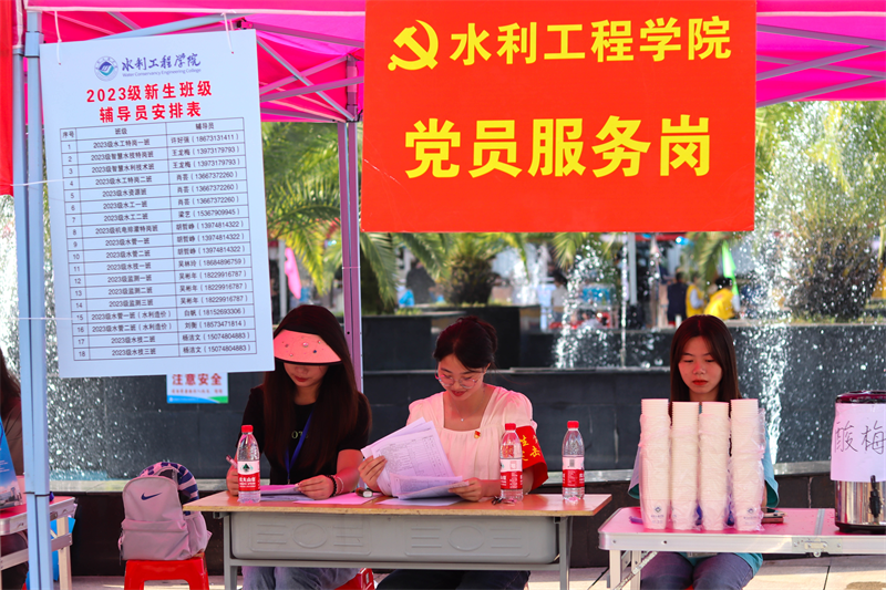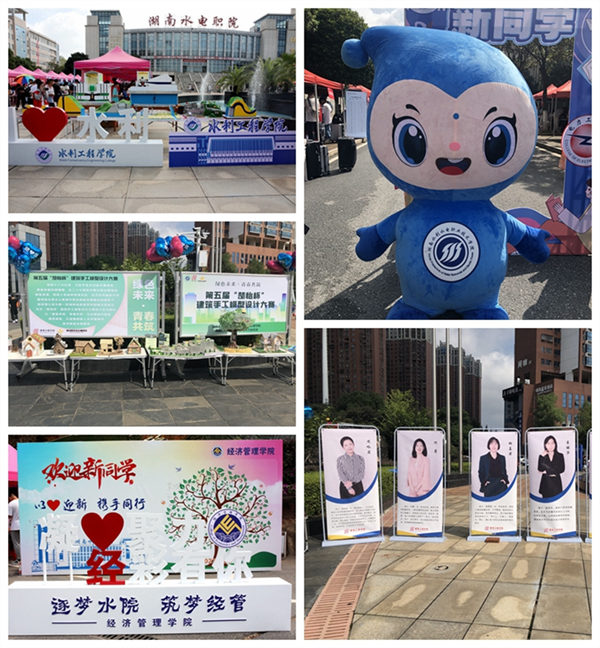 在今年的迎新工作中,二级学院的各类花式迎新依旧赚足了眼球,尽显校园文化特色。广场上摆放的水利工程模型、建筑工程模型让新生们一进校就对自己所学专业有了初步的感性认知。新生大礼包、迎新展板、吉祥物上,学校校徽和“忠诚、干净、担当、科学、求实、创新”的新时代水利精神随处可见。“水宝”“电宝”作为学校知名文化IP,迎新现场自然是少不了他们的身影,线上的“水宝”“电宝”等廉洁主题表情包也同步推出,形成线上线下联动。各类充满水院文化气息的文创产品通过趣味投壶、现场摸奖等形式向新生送出,水利工程学院的院徽、建筑工程学院欢迎你字样由2023级所有新生的名字构成,经管学院的新生签到树、建筑工程学院的辅导员简介等让新生们充满了归属感。