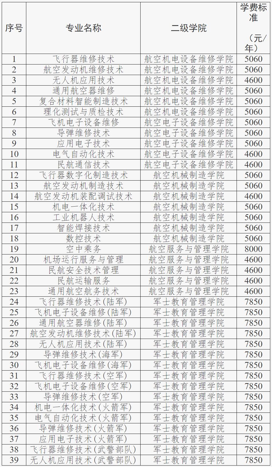 第十二条 学院2025年设23个紧密对接航空产业的专业及16个定向军士专业招生,学制均为3年,学院遵循属地原则,执行湖南省发改委、财政厅和教育厅核定的收费标准收费。